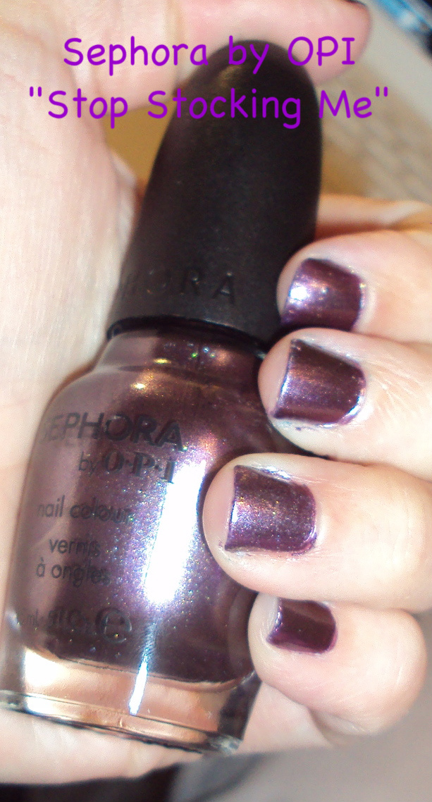 Stop Stocking Me is a gorgeous metallic golden plum color, perfect for the upcoming holiday season as it's neither too vampy nor too pastel (think Sin-Cerely Violet from this past fall collection from the brand...it was so out of place amongst all the deep vampy colors). On my nails it hovers somewhere between a more grayed-blue-toned plum and a more royal-blue purple...and being that I'm a HUGE purple lover, I fell in love with it just from seeing it in the bottle!